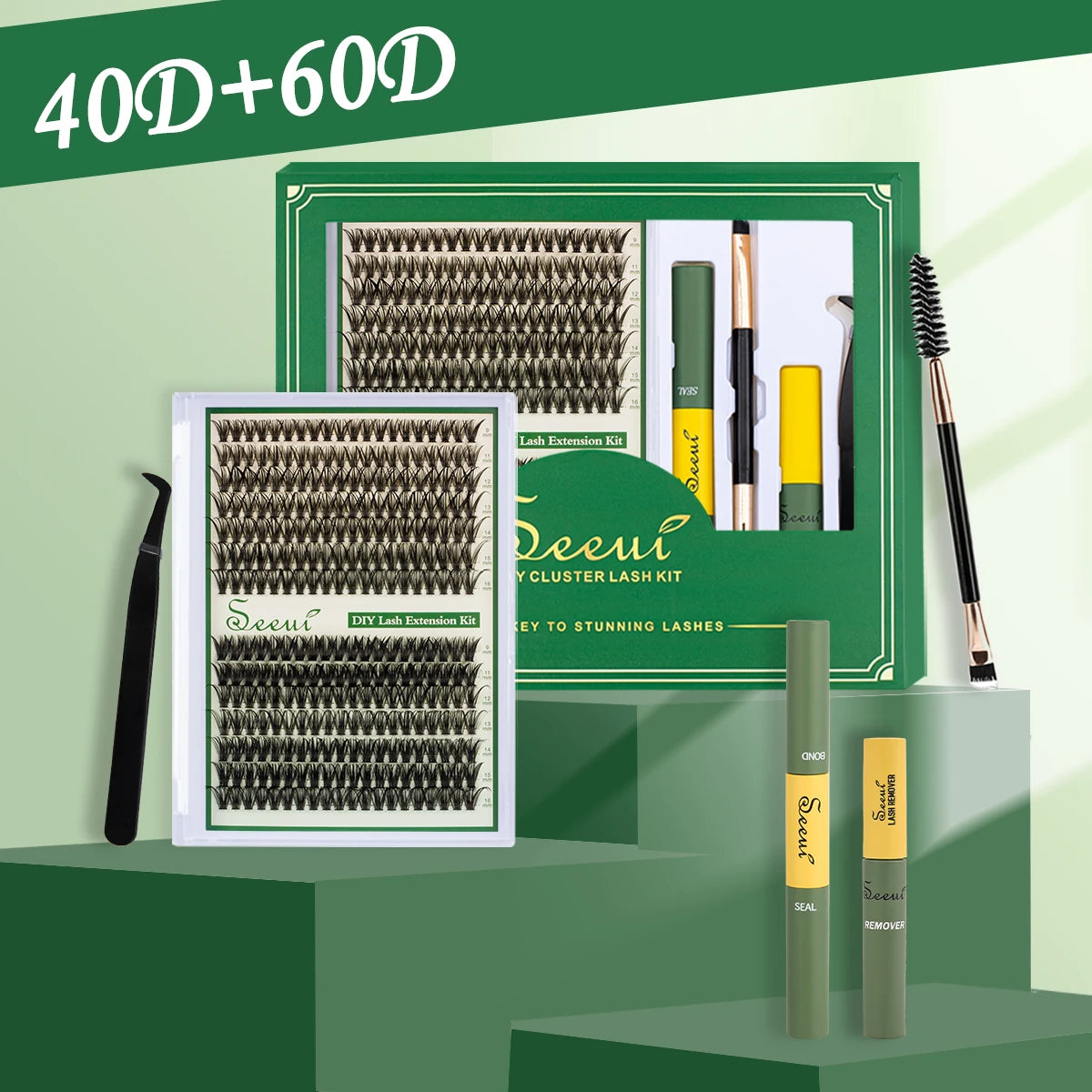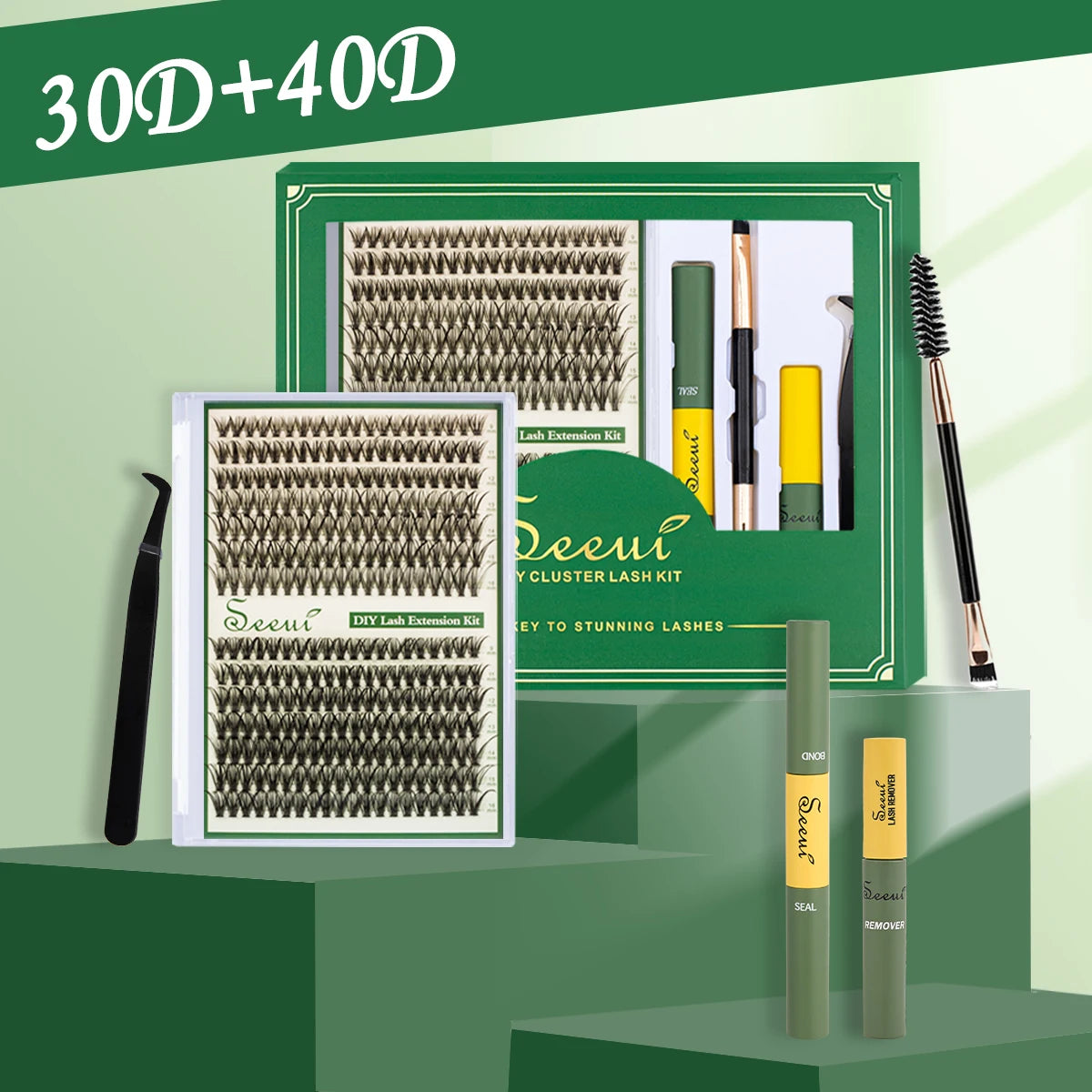 ISEEN-Juego de pestañas postizas segmentadas DIY, libro de pestañas en racimo de gran capacidad con pegamento, elimina la pegamento, Twezeer, cepillo, regalo de Festival