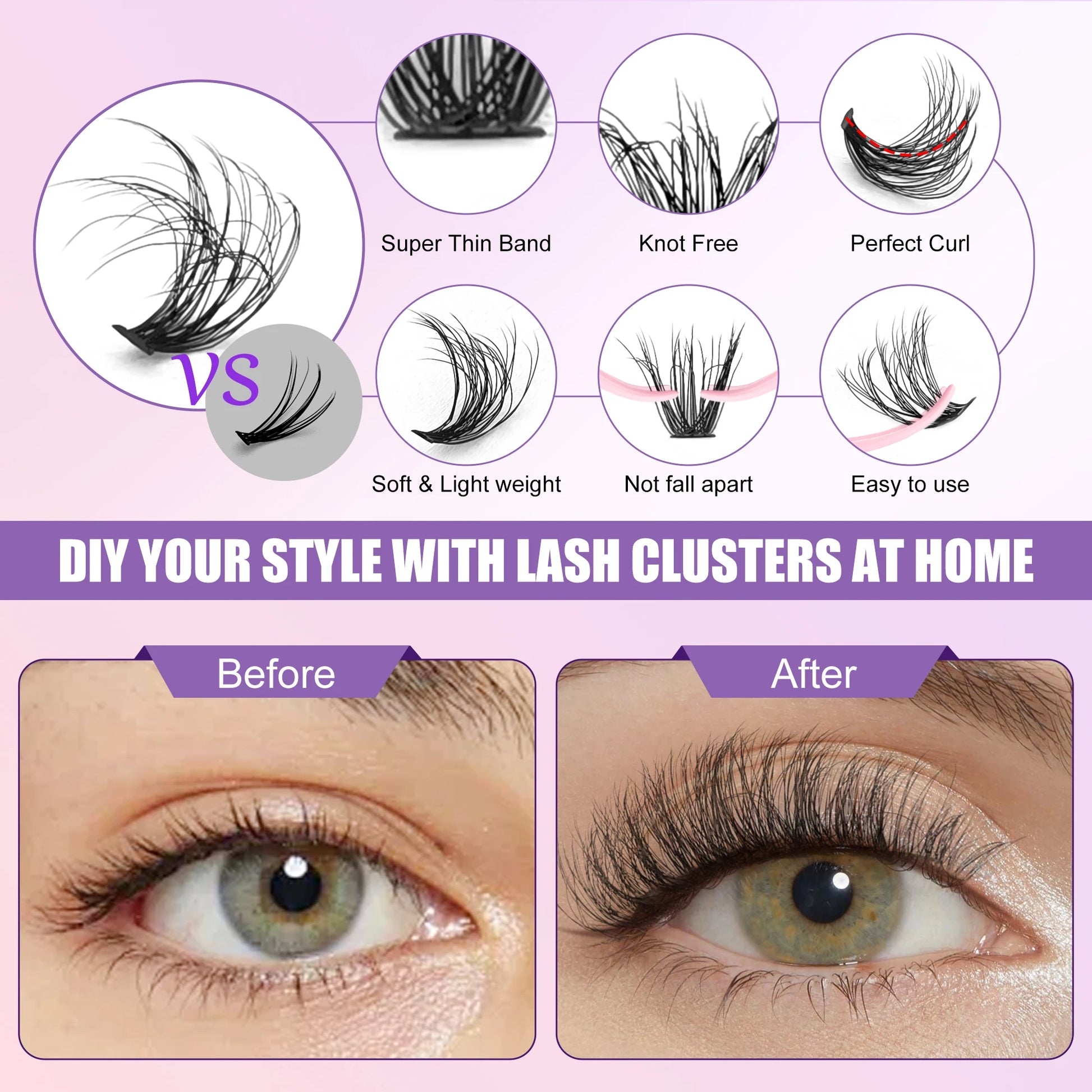 LAKANAKU-pestañas de racimo esponjosas 3D, Mega volumen, pestañas en racimo DIY, extensiones de pestañas individuales, pestañas de visón 3D